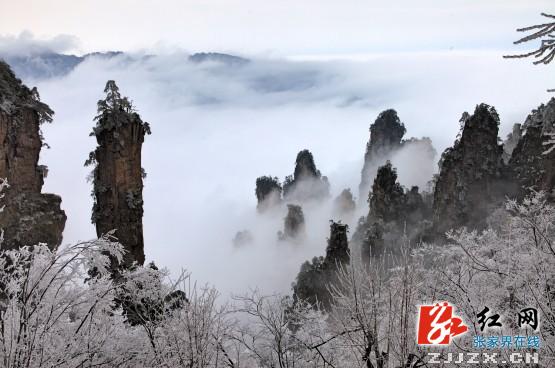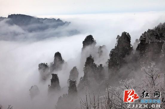 近日,随着气温的进一步下降和冷空气的侵入,武陵源海拔高的景区均出现大面积雾凇创造了良好条件。云起雾涌之间,武陵源雾凇景观更显神奇,造访游客无不陶醉其中。