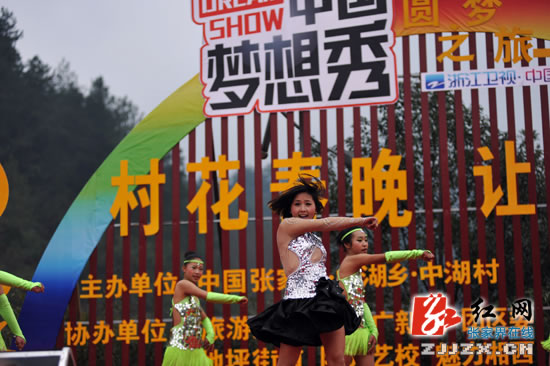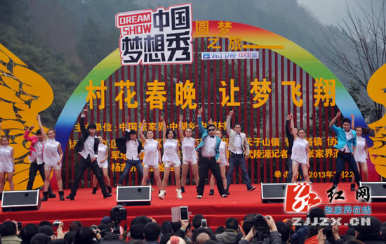 绝版山水中的圆梦之旅如此温暖 活动现场,张家界最具代表的乡村民俗表演茅古斯舞、土家溜子打击乐、围鼓、阳戏、民歌对唱、花灯、千人摆手舞等陆续亮相,“中国梦想秀”的众多追梦达人更是鼎力相助。现场掌声、欢呼声接连不断。晚会的主角当属最美“村花”覃露,她登台为现场观众表演了张家界版《江南style》和拉丁舞,用优秀的舞姿答谢所有前来见证她圆梦的朋友。