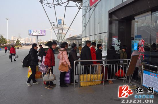 张家界火车站:多方筹措从容应对 春运回家,凝结了老百姓思家念亲之情,每年火车票的“一票难求”也引发了普通大众的百般无奈,然而今年的张家界火车站在这方面却从容了许多。正准备乘坐火车前往怀化的李先生告诉记者,今年张家界火车站各项服务都非常人性化,无论是订票、取票、排队,都没有往年的繁杂,显得非常规范。据了解,在为了最大限度方便学生和外出务工人员购票、取票,张家界火车站开设人工售票窗口14个(可取票),新增自动取票机1台,自动售票机2台(可取票),代售点已辐射到两区两县部分乡镇。