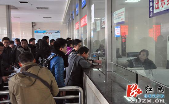 1月26日上午,张家界中心汽车站繁忙的售票大厅
