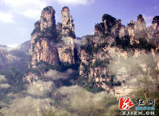 天子山景区秀峰笔挺突起,遥冲蓝天。吴勇兵摄